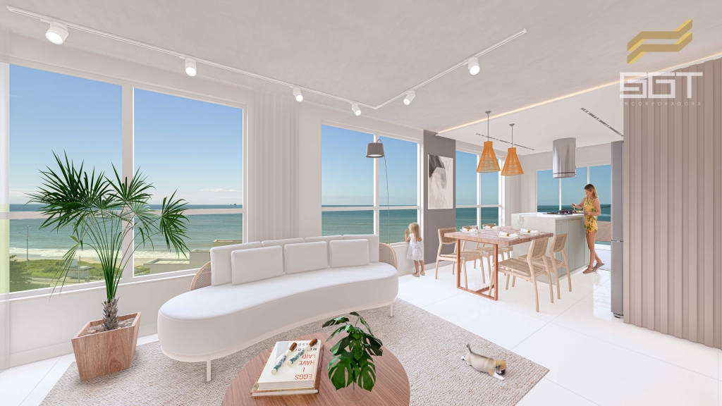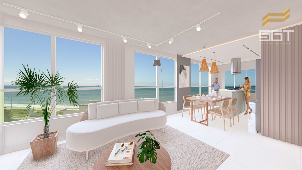 Amplo living com vista panorâmica para o mar